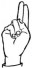 На ћирилици написано ВУКОСАВ ТОРБИЦА састоји се из 14 слова [?]. Исписано ћириличном једноручном азбуком за глувонеме: